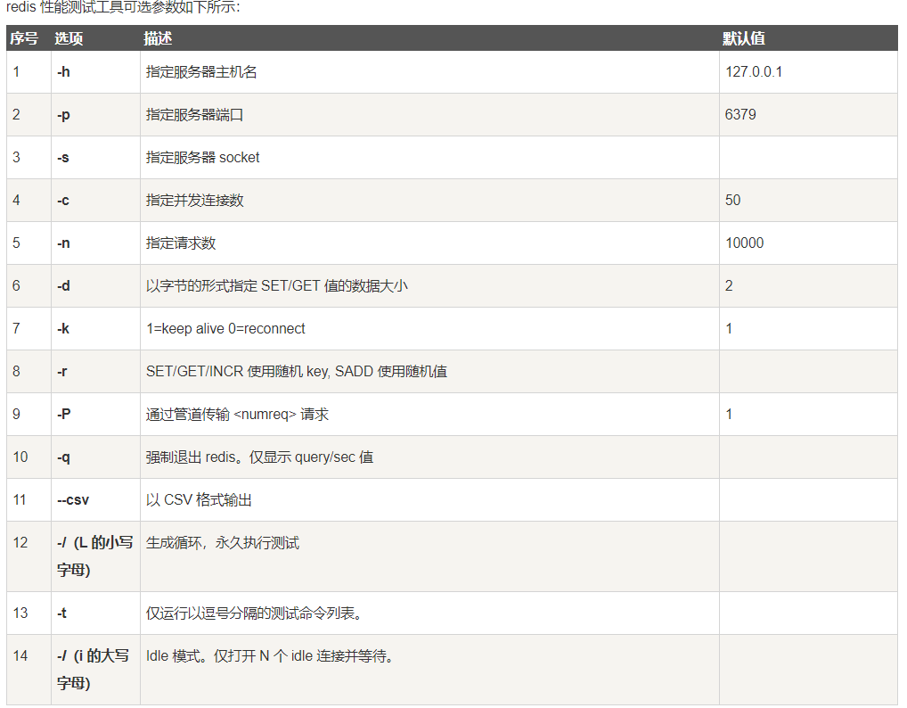 1、使用 redis-benchmark 来进行压力测试,具体的option